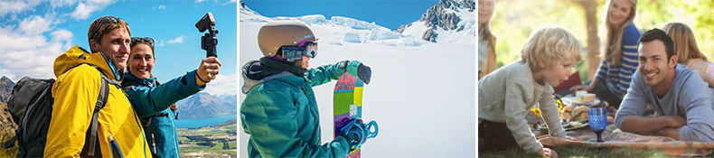 使用新的拍照功能可进行放大和视角微调;或者在户外运动时拍摄4K延时视频;又或每日从全新的角度拍摄日常生活。附带的镜头支座可简便地在各种表面固定摄像机,可进而扩展运动相机的拍摄潜力。