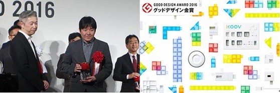 本次KOOV在4085件候选产品中崭露头角,与其它18件产品一起被授予“2016优良设计奖金奖”。评审委员会给予了KOOV很高评价,他们表示:“灵活运用科技造物,寓教于乐,不论作为玩具还是作为教材使用都十分出色。因此,KOOV能够创造出各种可能,让孩子和成人都能乐享其中。此外,用KOOV创造的作品具有优良的设计感,还能对空间环境起到点缀,装饰的作用。”