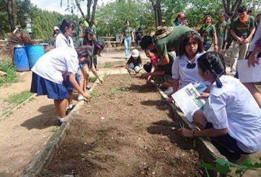 在有机菜园里与同学们一起播种