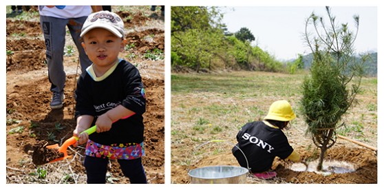 在北京林学会技术人员的专业讲解和指导下,索尼志愿者取工具,挖坑,运树苗,培土,灌溉,按不同的树种和区域栽植树苗。虽然阳光炙热,鞋子上沾满了泥土,小朋友们变成了小泥人,但大家依然干得起劲,一个多小时就将今年100余株的白皮松,柽柳,栓皮栎树苗全部栽种完成。大家相约明年继续参加植树活动,践行索尼的环保理念,为北京更多的蓝天做出自己的贡献!