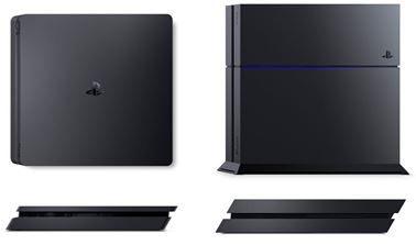 与之前的CUH-1200 系列(下图右)宽度53mm相比,新的 CUH-2000 系列缩减尺寸达到约39mm(以上测量尺寸不包括最大突起)。尺寸和重量的减少,使得PS4®更容易放置、存储和携带。此外,由于包装可以更小,也提高了航运效率。