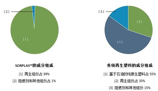 另外,材料中阻燃剂的使用。传统材料中阻燃剂的比例越高越影响塑料的本身性能。SORPLAS™中使用了尽可能少的阻燃剂(小于1%),使得材料在保有高阻燃性之外,还保持了塑料本身的优异性能。同时,也正是由于阻燃剂的超低比例,SORPLAS™可实现多次回收重复使用,更大程度地提高了塑料的环保表现。