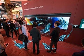 展台中非常受欢迎的区域当属索尼最新的、酷炫的空间音频排列技术Sonic Surf VR,使观众能潜入“虚拟的声音之海”或参观虚拟博物馆。