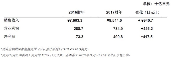 2017财年是索尼总裁兼CEO平井一夫第二个中期计划(2015财年至2017财年)的最后一年,本财年索尼公司实现营业利润7349亿日元的历史最高业绩。