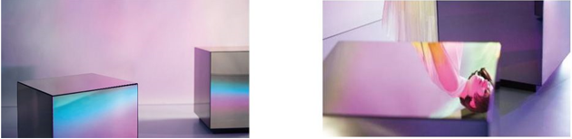 通过呈现在墙上的光影和声音,参观者将被引领到一条通向未来的小径,展望在将来,我们将如何以不可思议的方式与机器人互动。