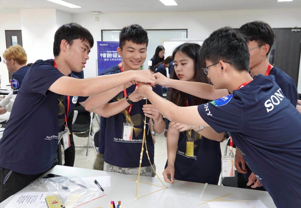 大学生通过 “棉花糖塔”互动游戏,学习思考如何通过团队合作改善设计,实现既不影响品质又对环境友好的目的