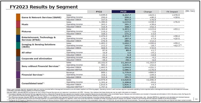 *索尼从2023财年第一季度开始采用《国际财务报告准则第17号-保险合同》(IFRS 17)。2022财年的数据已根据IFRS 17进行了重述。