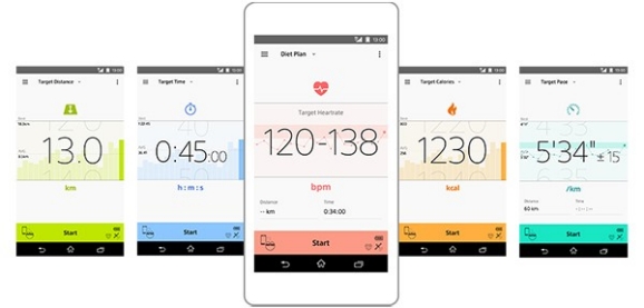 索尼Smart B-Trainer搭配有专门的App,能为用户提供个性化定制的训练服务。首先,用户需在应用商店或App Store下载“Smart B-Trainer for Running”的App,与设备蓝牙配对后,即能从时间、距离、消耗卡路里、平均步伐、高效燃烧脂肪、持久力提高等目标中选择适合自己的训练计划。设定训练计划后,用户可以在手机上随时查看自己的运动状态。每隔一段时间,Smart B-Trainer内置的语音训练指导功能会播报运动距离、心跳等数据,无需操作,就能知道自己的训练情况。