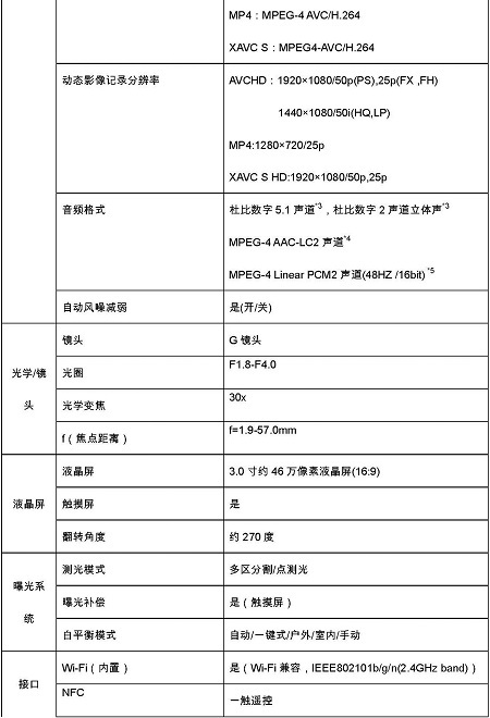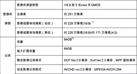 索尼Handycam高清摄像机HDR-CX680主要参数