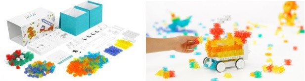 KOOV™由彩色缤纷的拼插模块、设计简洁的电子元件、支持Windows、MAC以及iPad系统的专属KOOV™应用程序构成。通过模块和电子元件的立体拼搭组合,可以制作出多种多样的“机器人”。