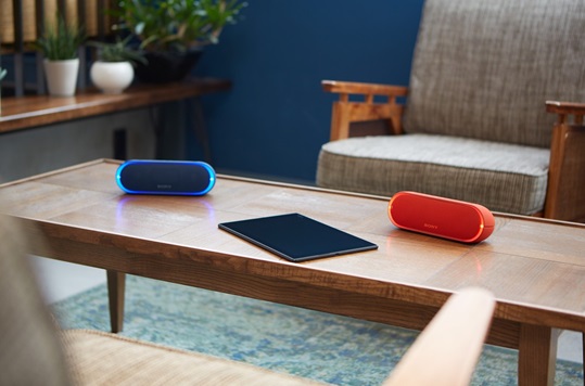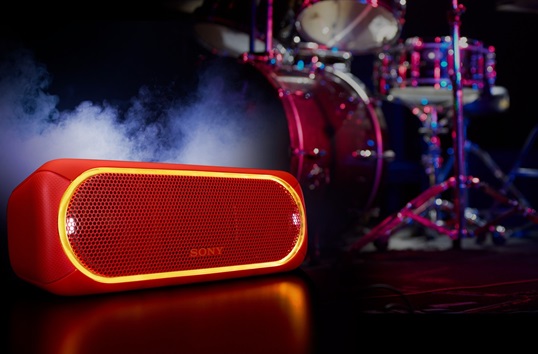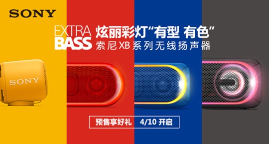 2017年4月6日,索尼(中国)有限公司正式发布索尼EXTRA BASS系列多款新品,包括索尼蓝牙音箱SRS-XB40/30/20/10。索尼EXTRA BASS系列主打重低音,其标志体现整个系列所要表达的理念,其中“BASS”一词采用粗体厚重风格,以彰显该系列产品的低频音效;靠得更近的各字母则体现其设计的紧凑致密。此次EXTRA BASS系列新款蓝牙音箱均采用“实体”结构,为其低频声音赋予致密、厚重的外观,除比通常的扁平盒状音箱更厚重、强烈的视觉形象外,新款蓝牙音箱还采用圆边设计,使其更耐用。与此同时,新品四周的条灯灯光与音箱发出的声音同步,带来更酷炫的视觉效果。相结合的产品外观设计和智能灯光技术将EXTRA BASS的体验推向新高峰。