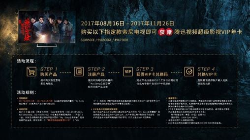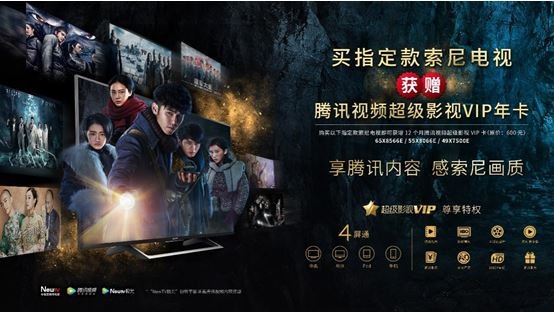 从今天起至11月26日购买任意一款新品的消费者,均可获赠12个月“腾讯视频超级影视VIP卡(兑换码)”一份,消费者不仅可以在索尼电视大屏畅享腾讯视频的海量付费内容,还可在PC/手机/Pad等其它终端通用。
