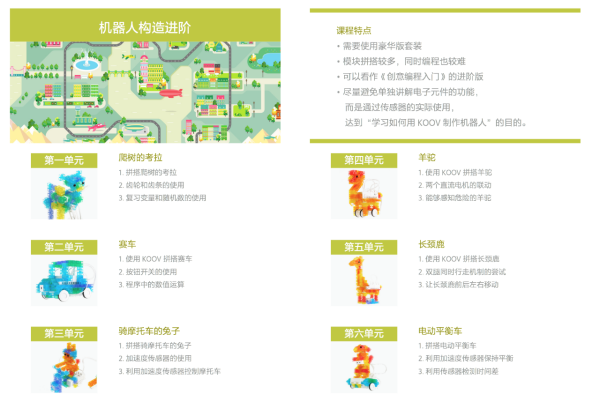 日前,索尼中国教育事业部为KOOV可编程教育套件配套APP推送升级版本。此次升级增加了在进阶教室版块的《机器人构造进阶》和《编程技巧进阶》两部分课程,至此索尼KOOV可编程教育套件中的免费官方作品已增至45例(基础版适用于部分,豪华版可完全实现)。“进阶教室”是索尼可编程教育套件KOOV 配套APP中的一个板块,通过此板块中的课程,用户可以在家中在线自学简单的可视化编程知识。从9月20日起,《机器人构造进阶》和《编程技巧进阶》两门课程将率先开放前两个单元,后续还将陆续开放新的单元。索尼KOOV配套APP课程的升级将不断更新与拓展,提醒喜欢KOOV的用户赶紧更新下载最新版App。