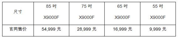 附录:索尼4K HDR液晶电视X9000F系列新品价格说明