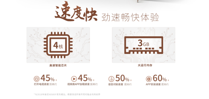 索尼U8G的硬件配置可以用“强大”来形容。4核+3G内存带来畅快享受,使得开机速度、APP启动速度、语音识别速度和APP安装速度都得到进一步提升,日常操作更加便捷,为消费者带来了实打实的体验升级。