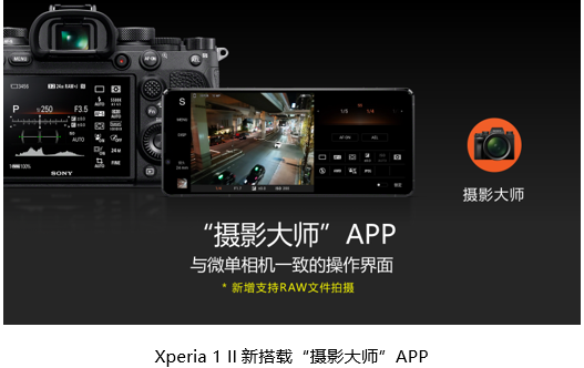 Xperia 1 II三镜头相机采用三款不同焦段的镜头(16mm/24mm/70mm),不仅可以满足多元化的照片构图需求,更可结合新搭载的“摄影大师”APP实现手动设置ISO、快门速度等专业操作功能,为用户带来索尼微单™相机的专业拍摄体验,在拍摄时更得心应手。新增Raw格式拍摄,还可获得更多的后期空间。