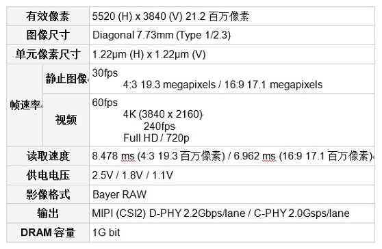 这款配备了DRAM的传感器可实现快速数据读取速度,能够捕获高速运动中的物体的最小失真度的静止图像;于此同时,可支持在全高清(1920 x 1080像素)模式下拍摄1000帧/秒(约比传统产品快8倍)的视频,实现超慢回放。