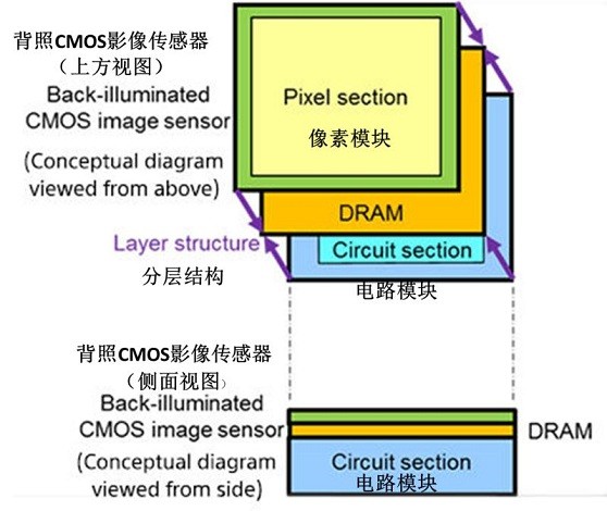 1. 业内首个配备了DRAM的3层堆叠式影像传感器,能够仅在1/120秒内高速读取1930万像素的图像