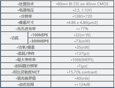 1.实现了业界较小的4.86μm像素尺寸的基于事件的堆叠型视野传感器,体积小,分辨率高
