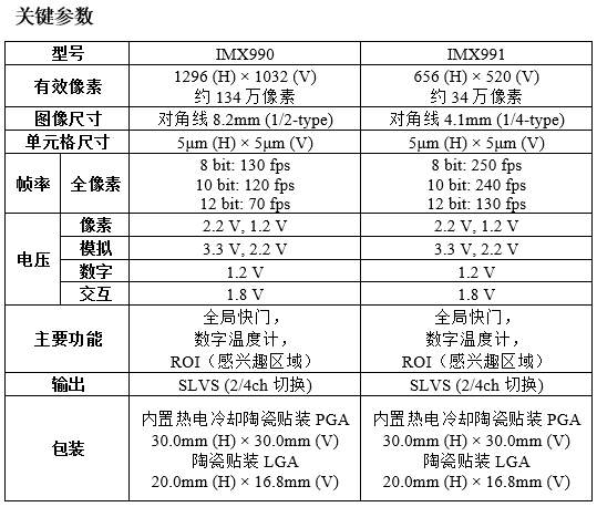 传统SWIR图像传感器通常具备模拟输出,但索尼的新款传感器支持数字输出,也能够提供与当前工业CMOS图像传感器相同的性能。模拟输出传感器需要工业设备摄像头的数字转换电路或其他功能,而此次发布的新款传感器已经自带了这项功能,减少了摄像头开发的步骤,使得多功能摄像头的研发更加简单。